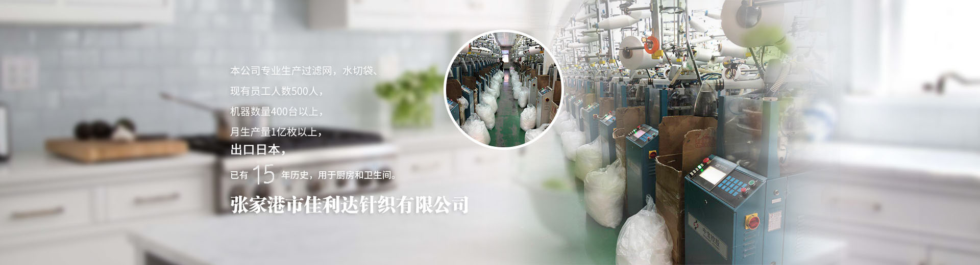 張家港市佳利達(dá)針織有限公司地處田垛里二區(qū),北依南通港,東傍上海港,與蘇錫常地區(qū)接壤,地理位置優(yōu)越,水陸交通便利。現(xiàn)有員工人數(shù)500人,機(jī)器數(shù)量400臺(tái)以上,月生產(chǎn)量1億枚以上。公司專(zhuān)業(yè)生產(chǎn)水切網(wǎng)、滌綸網(wǎng)袋、垃圾過(guò)濾袋、無(wú)紡布網(wǎng)袋、水槽過(guò)濾袋、水槽水切袋、不銹鋼水槽網(wǎng)、廚余過(guò)濾、廚房衛(wèi)生清潔用品等,出口日本已有15年歷史,用于廚房和衛(wèi)生間,產(chǎn)品暢銷(xiāo)上海、廣州、深圳、南京、蘇州、無(wú)錫、常州等全國(guó)各地。